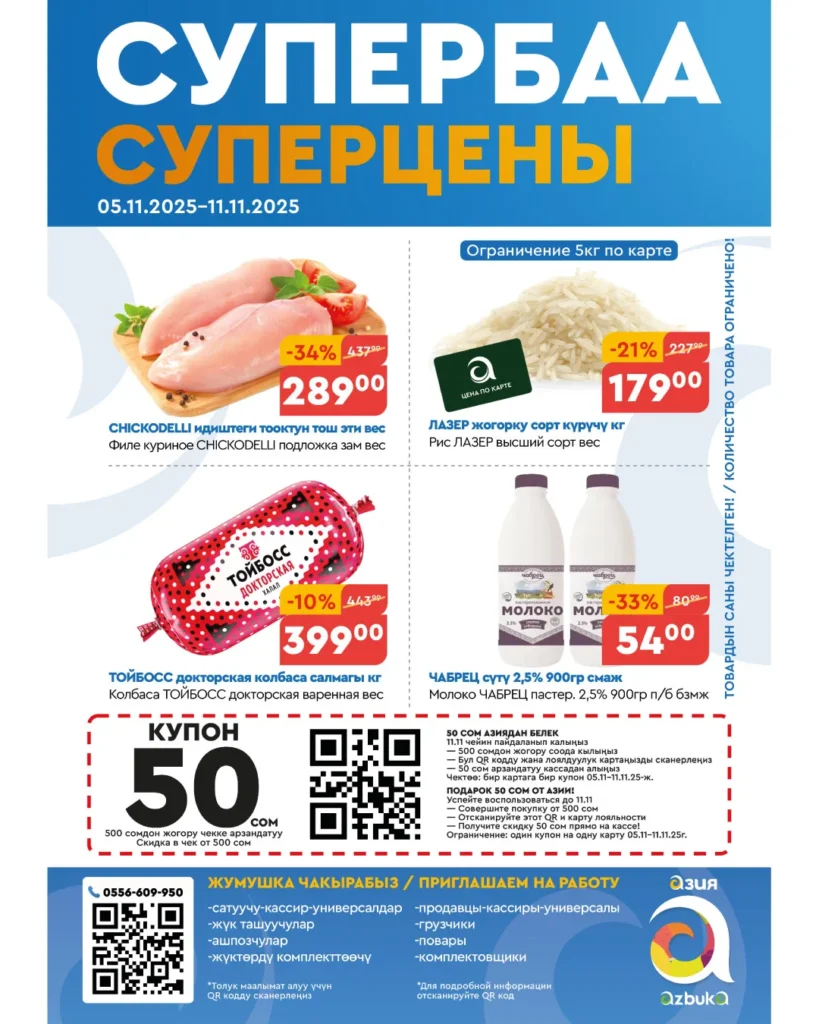 Купон на скидку -50 сом Действует до 11.11.2025 Покажите карту лояльности и QR-код кассиру при покупке Купон действует только для единоразовой покупки товаров и для 1 человека С 5 по 11 ноября получите скидку -50 сом при покупке от 500 сом Скидка работает во всей сети магазинов «Азия» и «Азбука» Купон не суммируется с другими […]