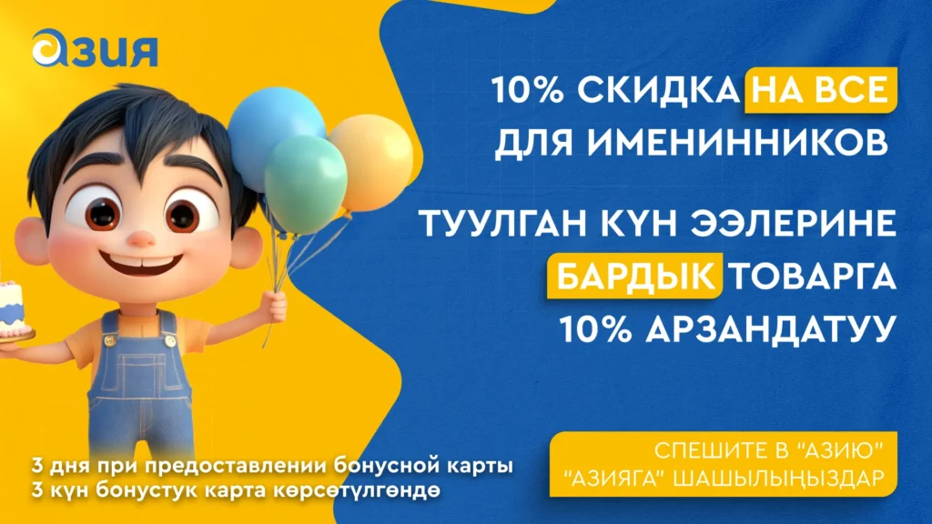 Скидки в Ваш День Рождения — в течение целых 3 дней!Невероятно интересное предложение от сети магазинов «Азия» и «Азбука» специально для наших дорогих посетителей. Акция действует 3 дня по бонусным картам: Мы рады предложить вам эксклюзивную скидку 10% Не упустите возможность воспользоваться этим удивительным предложением!